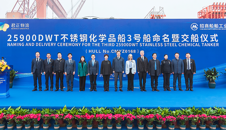邓仁杰先生在致辞中强调,君正船务作为全球液体化学品船运领域的佼佼者,以其专业的运营能力和严格的安全标准享誉业界,此次选择与招商船舶工业强强联手,共同打造这批25900载重吨不锈钢化学品船,充分展现了君正船务顺应绿色、智能航运趋势的前瞻性布局,以及对招商船舶工业品牌与技术的高度认可。从项目启动到今日交付,招商船舶工业与君正船务双方团队精诚合作、攻坚克难。双方共同打造的,不仅是一艘艘不锈钢化学品船,更是面向未来的绿色航运解决方案。